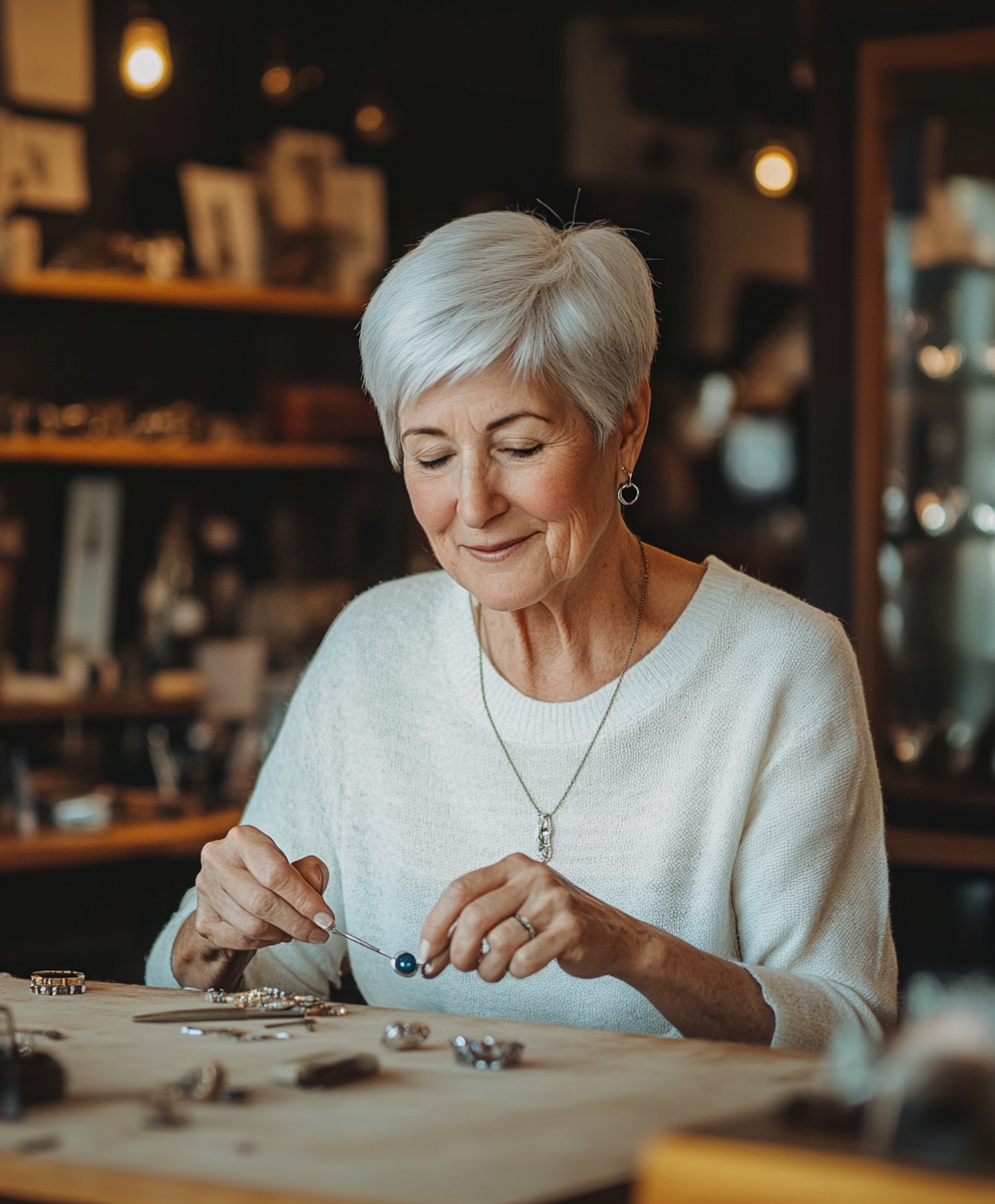 Jedes unserer Schmuckstücke wird mit großer Sorgfalt und Liebe zum Detail in unserer Werkstatt handgefertigt. Claire verwendet die feinsten Materialien und kombiniert traditionelle Techniken mit moderner Ästhetik, um zeitlose Schätze zu erschaffen.
