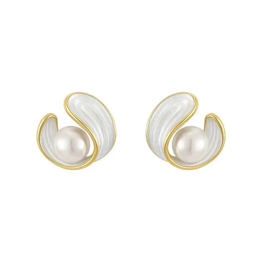 Glänzende Spiral-Ohrringe mit eleganten Perlen