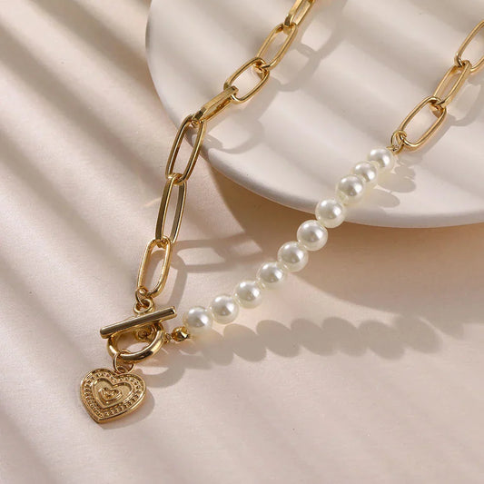 Rabatt 74%Gekreuzter Herz-Anhänger mit Perlen in Gold